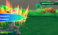 Genesect Douse Drive: Com um Douse Drive acoplado em seu canhão, Genesect torna-se capaz de disparar um raio poderoso com características do tipo água.