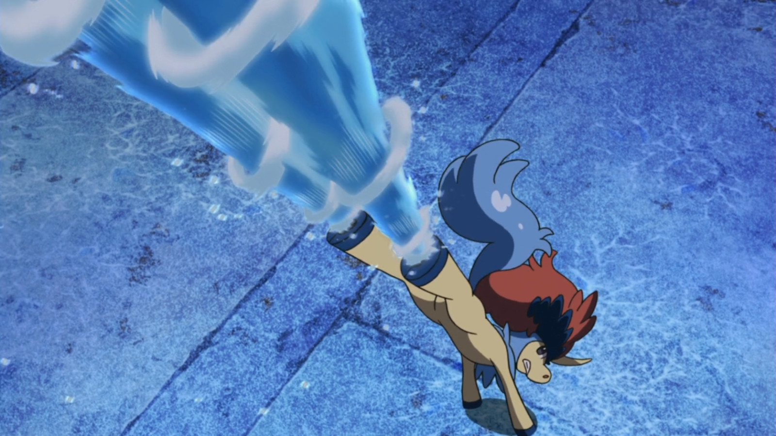 Keldeo Forma Ordinária: Pode deslizar sobre a água em alta velocidade esguichando água dos seus cascos. Ele se destaca no uso de movimentos das pernas enquanto batalha.