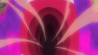 *Gigamax Gengar absorvendo a Tempestade de Areia do campo de batalhas*